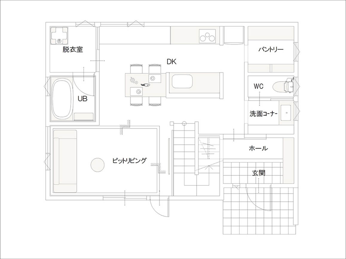 スムーズな動線設計帰宅したら玄関先でコートを掛けて、買い物した荷物をパントリーへ、そして洗面で手洗いうがい…