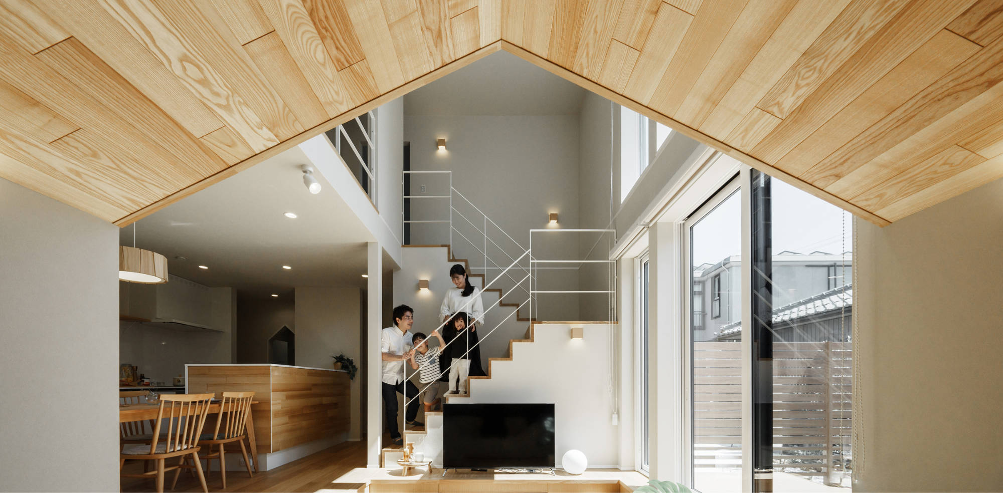 1階から2階まで一体的な空間にしつつ、綿密な計算に基づく温熱環境やパッシブデザインによって「エアコン1台で家中快適な生活」を実現。個々が好きな場所を見つけられる、どこにいても心地よい…そんな暮らしが体感できます。