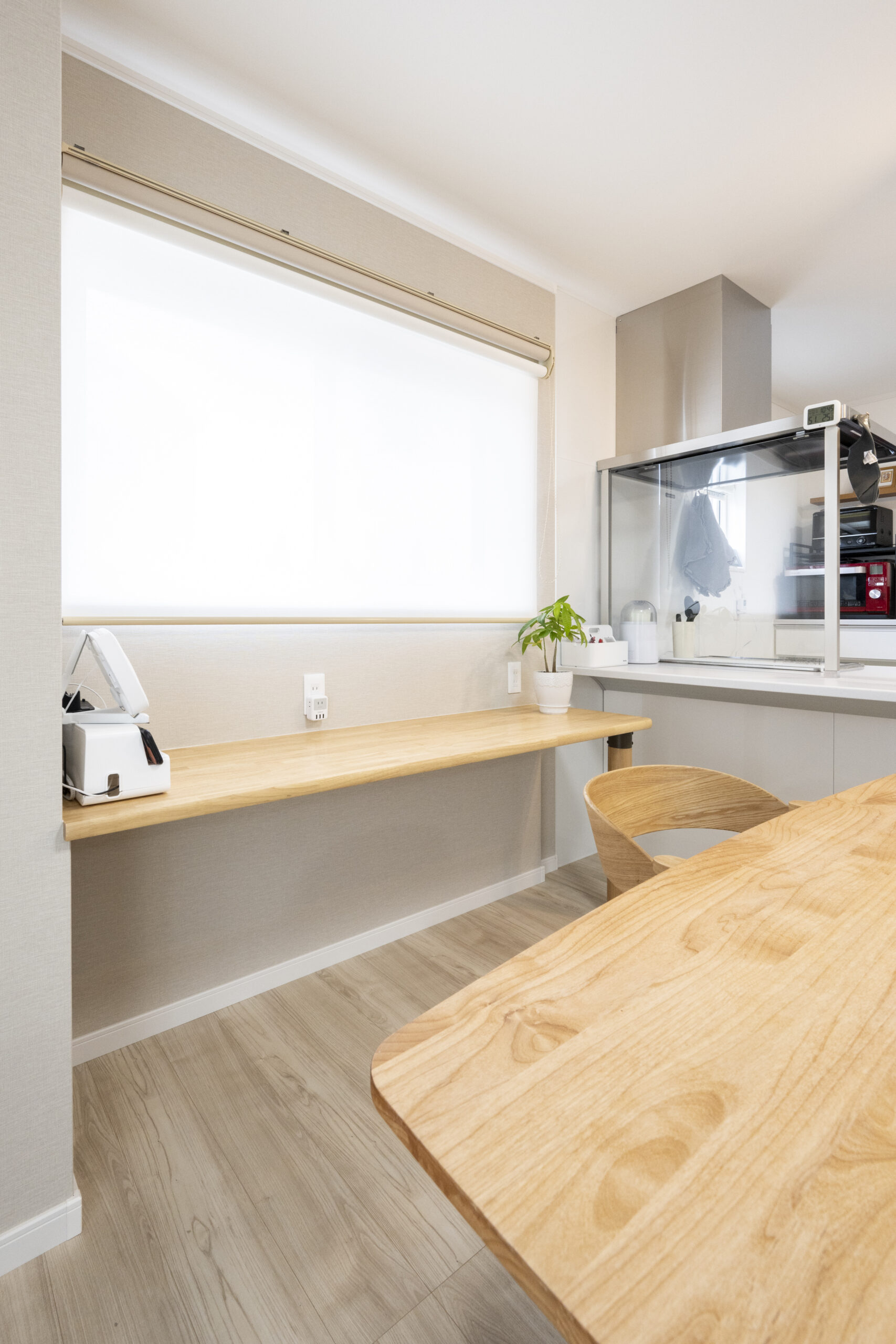 採用しやすいのは、40〜45センチ程度のサイズ。A4縦サイズが約30センチなので、作業スペースとしては十分な広さを確保できます。ダイニング自体への影響も少なく、見た目にも圧迫感を与えません