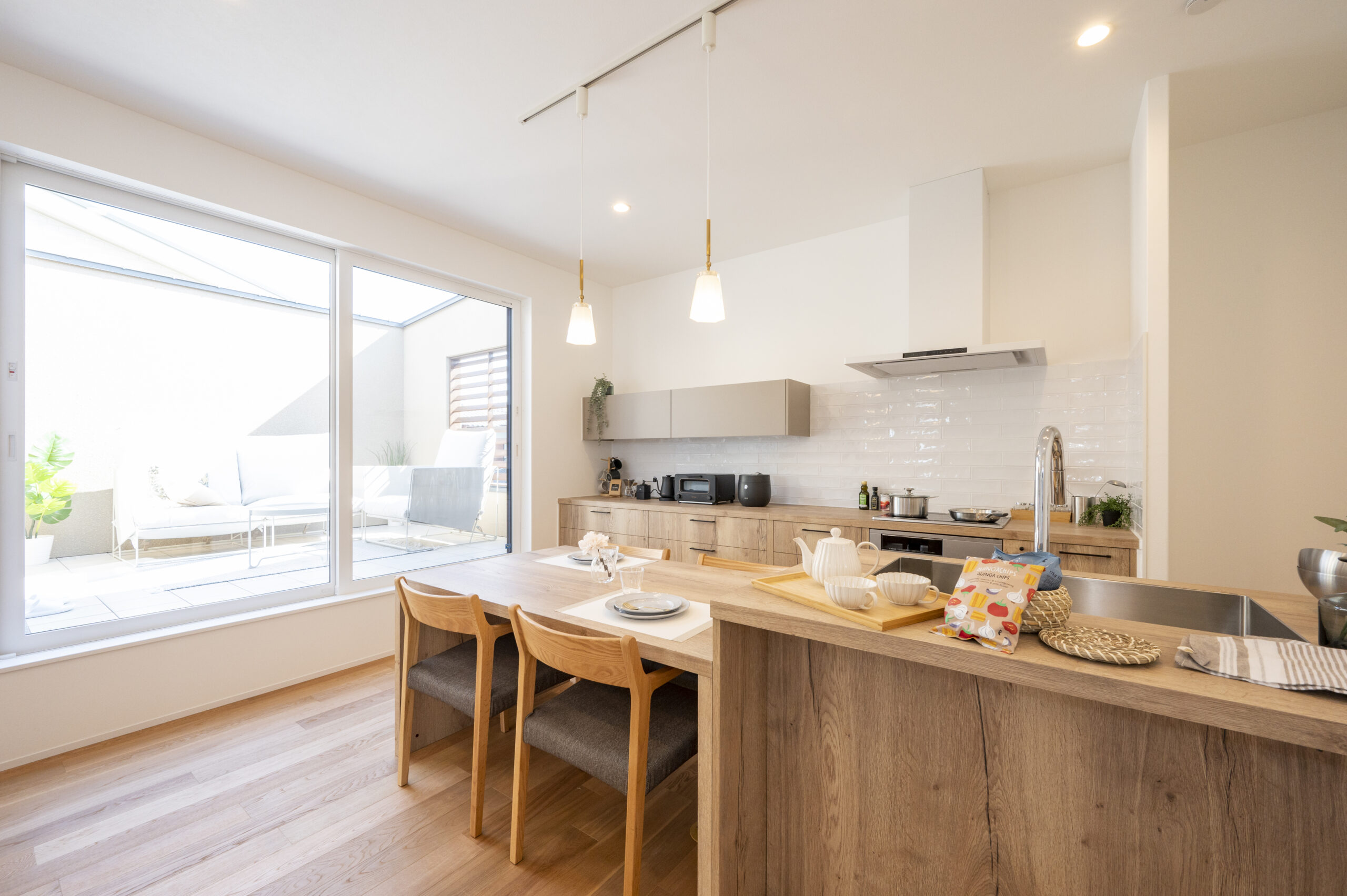 ニッケンホームの本社モデルハウスではキッチンと屋外空間がつながるレイアウト、大赤見モデルハウスでは造作キッチンカウンターのある暮らしを体感していただけます。