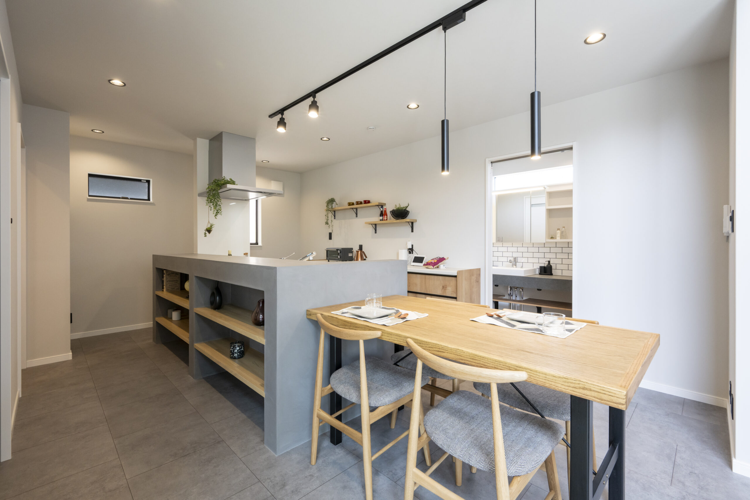 キッチンのカウンターも、おもてなしを意識して設計できるポイントの一つです。食事の準備をしながら会話を楽しんだり、飲み物を出したり、ダイニングテーブルとは別のおもてなしの場として機能します。造作のカウンターであれば、高さや奥行きを調整しやすく、使い方に合わせたプランが可能です。