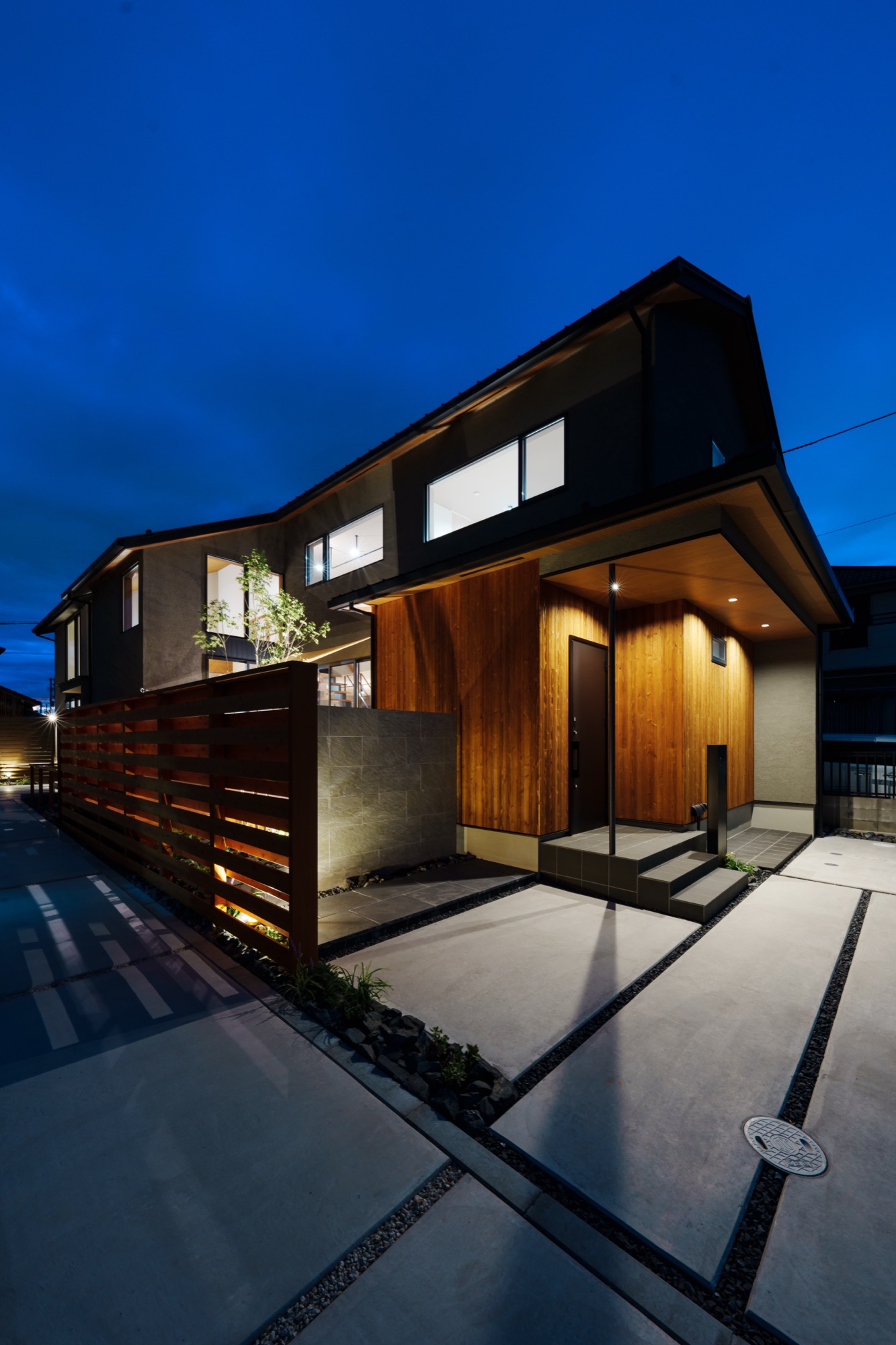 素敵な外観デザインは、大好きな我が家に帰った喜びをさらに大きなものにしてくれます。夜の外観を際立たせるためには、外構の照明によるライトアップが効果的。外壁の素材感や立体感を浮かび上がらせ、より特別感を演出できます。パワーボードなどの外壁材も、満足度を高めてくれるでしょう。