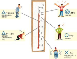 英国建築研究所によると「室温18度以下」から健康リスクが現れ、肺炎や心疾患などの重大な病気にかかる可能性が高まるとのことです。