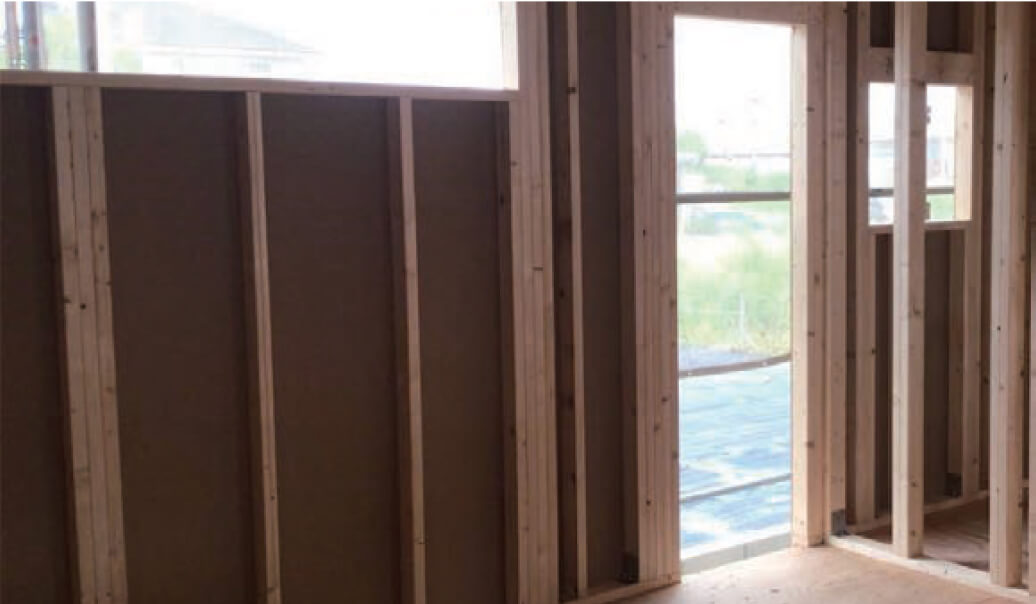 枠組みされた木部分と構造用合板が「面」となって、揺れの力を受け止め、分散・吸収していることが分かります。